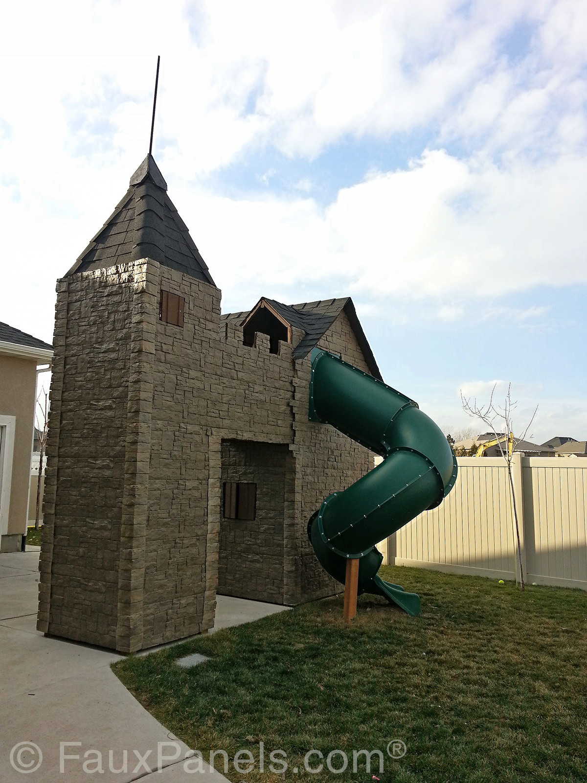 Built by the Boy Scout’s Venture Crew 360 in Pennsylvania for the Benefit of the Make-A-Wish Foundation, The Enchanted Castle Playhouse is a wonderful example of how great the panels look. As you can see in the photos, the panels are extremely easy to install. So easy, in fact, even kids can install them.