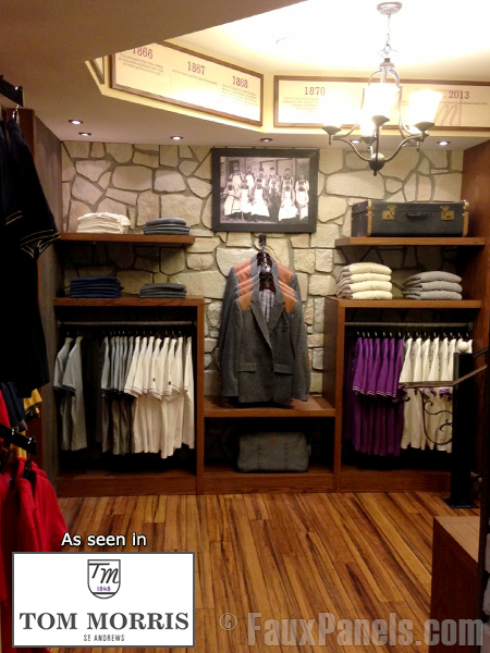 Tom Morris, the oldest golf shop in the world located in St Andrews Scotland was recently reopened and re-imagined for the 21st century, selling apparel and accessories for men that emulate the “gentleman’s game”. The faux fieldstone panels they used worked wonders to complement the store’s heritage while bringing it into the modern age.