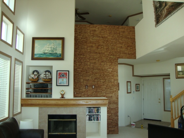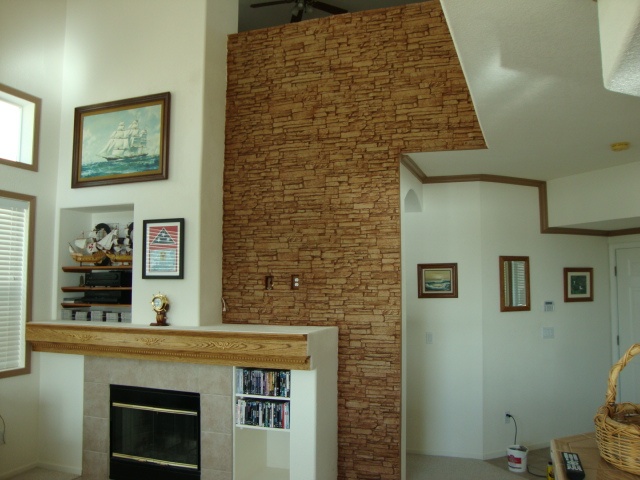 Fauxpanels.com customer Dan sent in pictures of his recent fireplace wall project, and it's a good baseline for how long it takes to install our panels.
