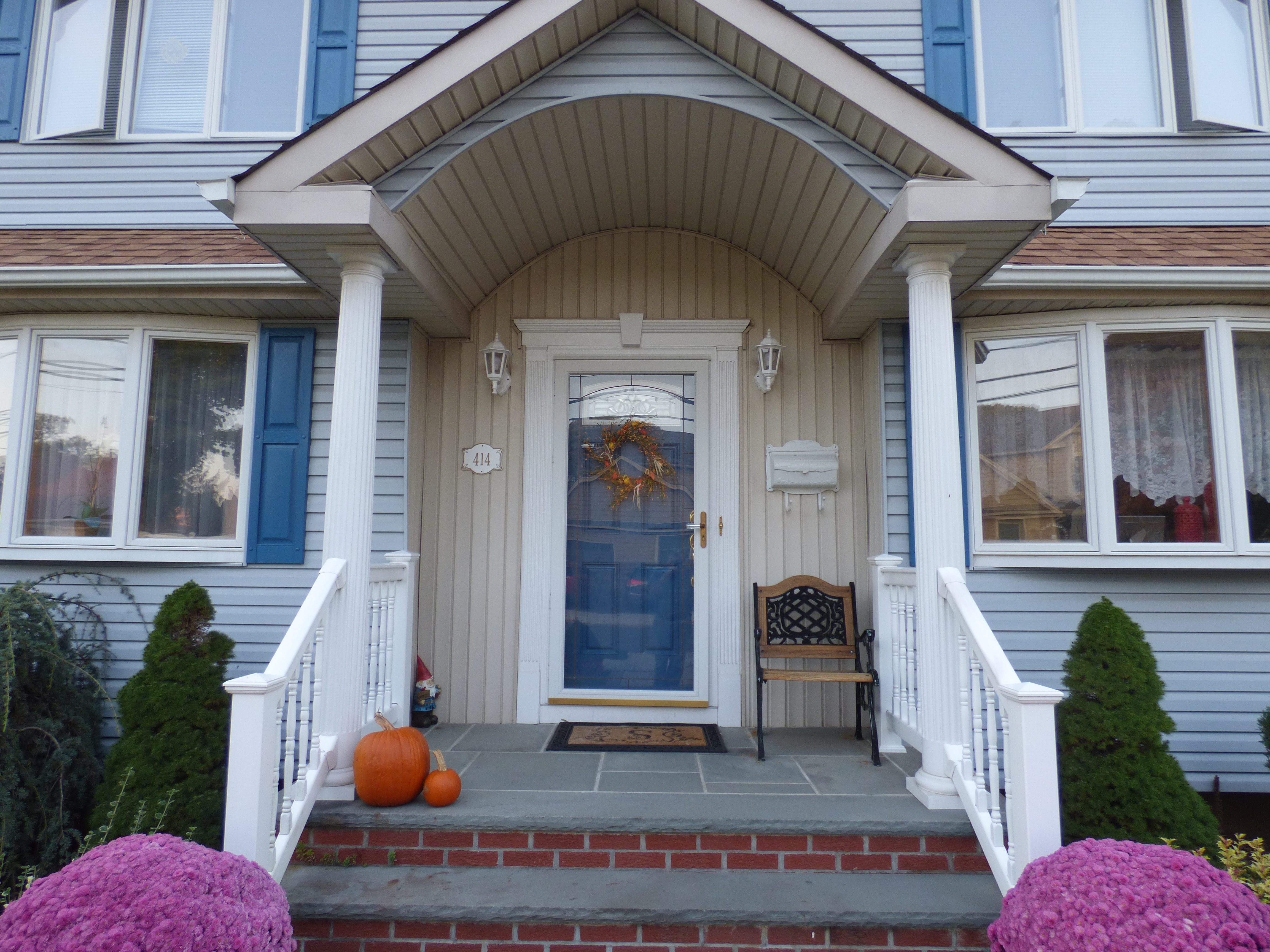 In the case of the Seidel house, the first step was the remove the existing vinyl siding around the doorway and porch. Then, when the walls are bare, it was time to add Drainage Mats.