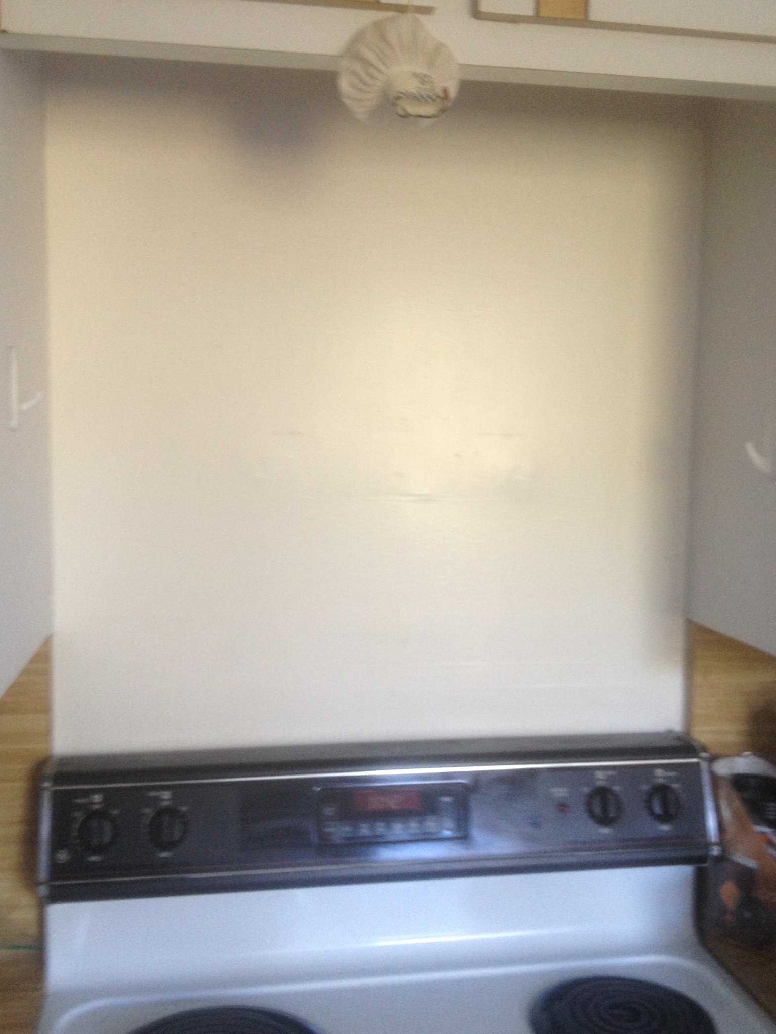 Brick kitchen backsplash trimmed to fit a small space DURING: The Oxford Panel was trimmed to fit