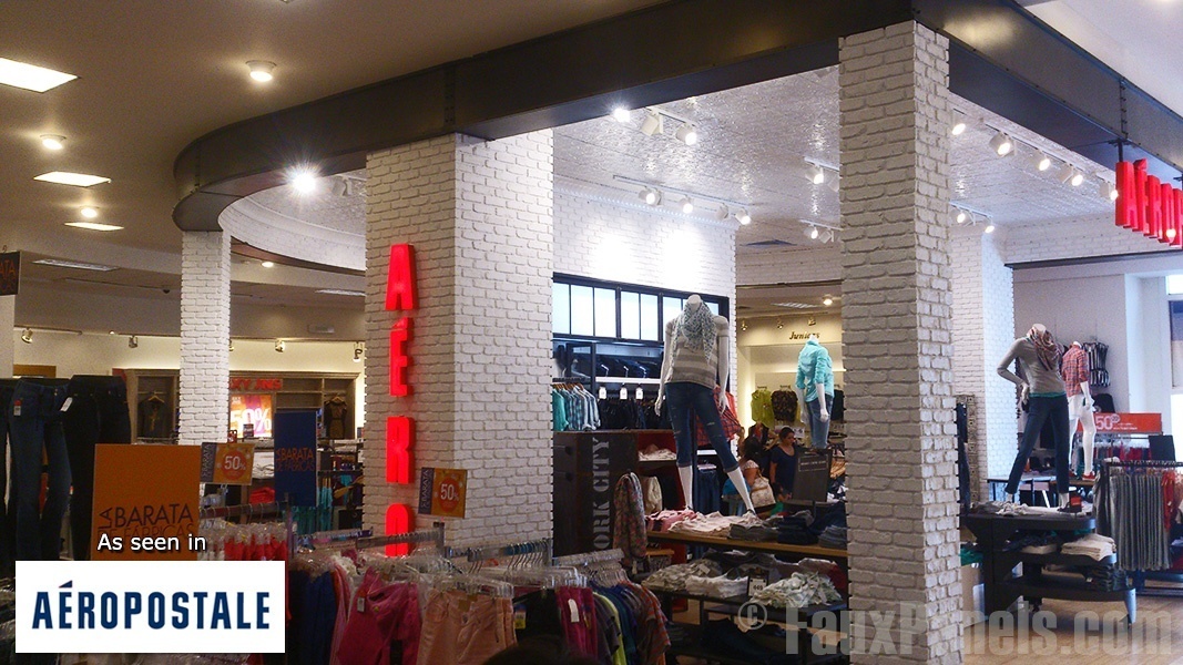 At Aeropostale, Old Chicago brick panels in Glacier White cover the store's support columns - enhancing the brand making the space relaxed and welcoming: