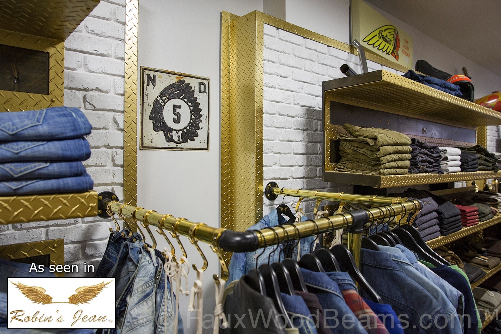 The same brick panels give a pleasant feel to a Robin's Jean store and go nicely with the denim on the shelves: