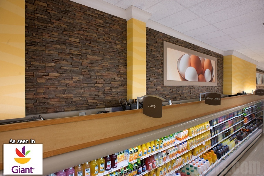For the Giant Food store, Wellington Drystack panels in Earth formed a great looking accent wall above the juice section: