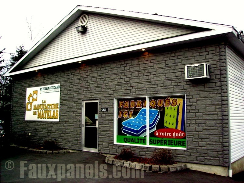 Novi Random Rock panels in gray blend give the exterior of this mattress showroom a professional appearance.