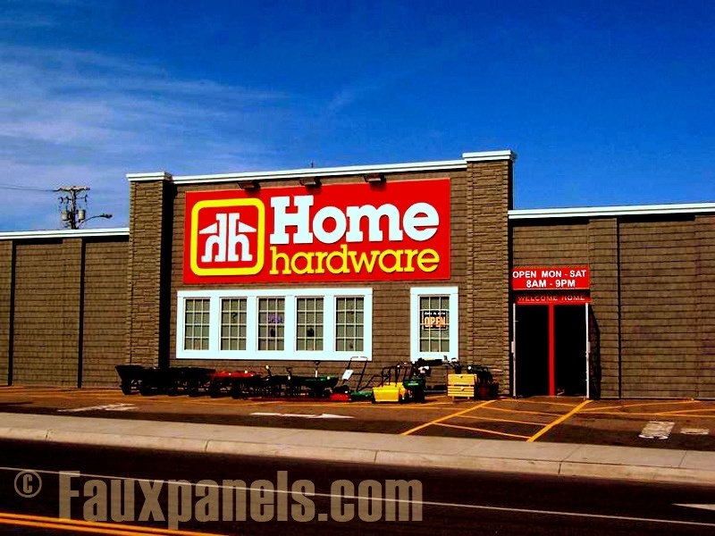 Novi Random Rock panels in Cedar blend give this hardware store enhanced appeal.