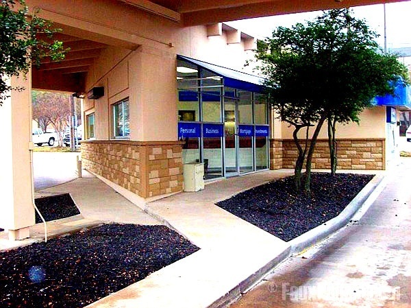 Windsor Random Rock wainscoting panels in Tri Buff blend match beautifully with a bank's exterior.