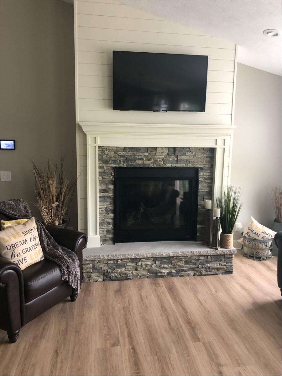 This fireplace project combined a shiplap wall with our Regency Stacked Stone panels for an strikingly beautiful look.