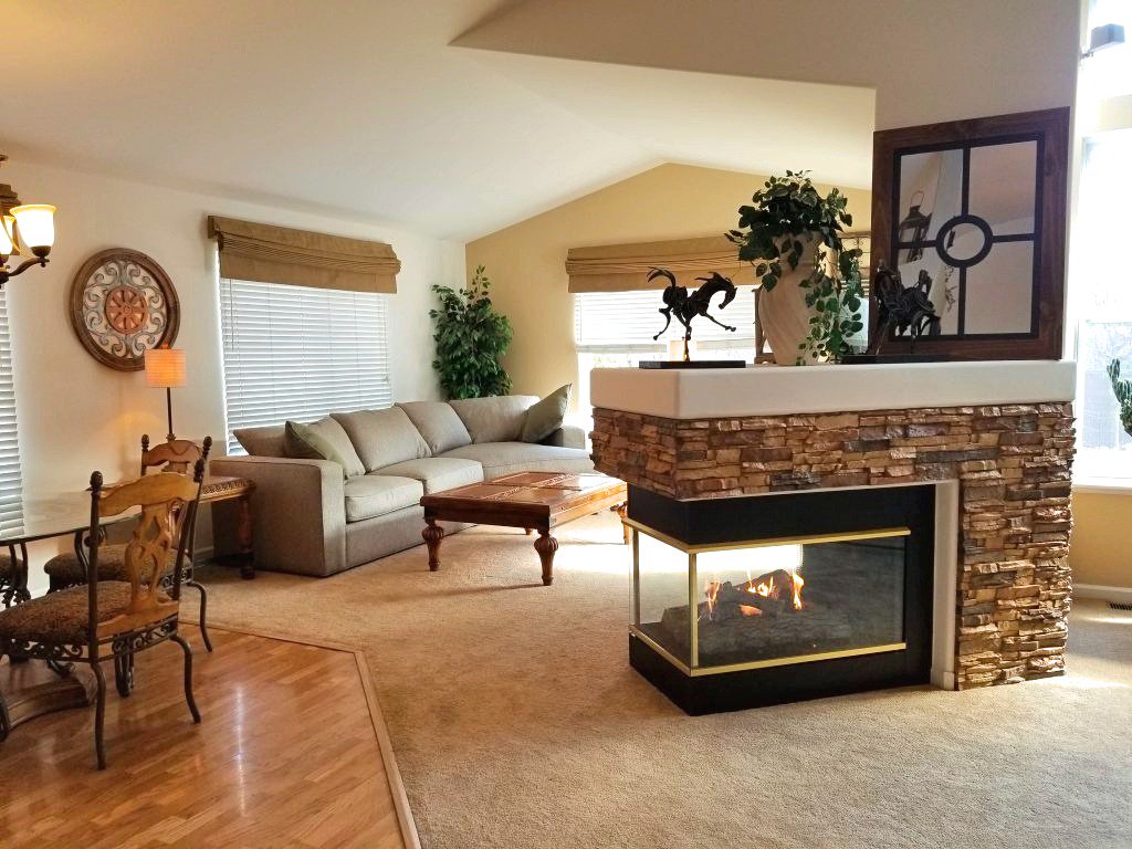 This customer's 3-sided stone fireplace design demonstrates the wide variety of ideas that FauxPanels can help execute -- from contemporary to fantastically retro.
