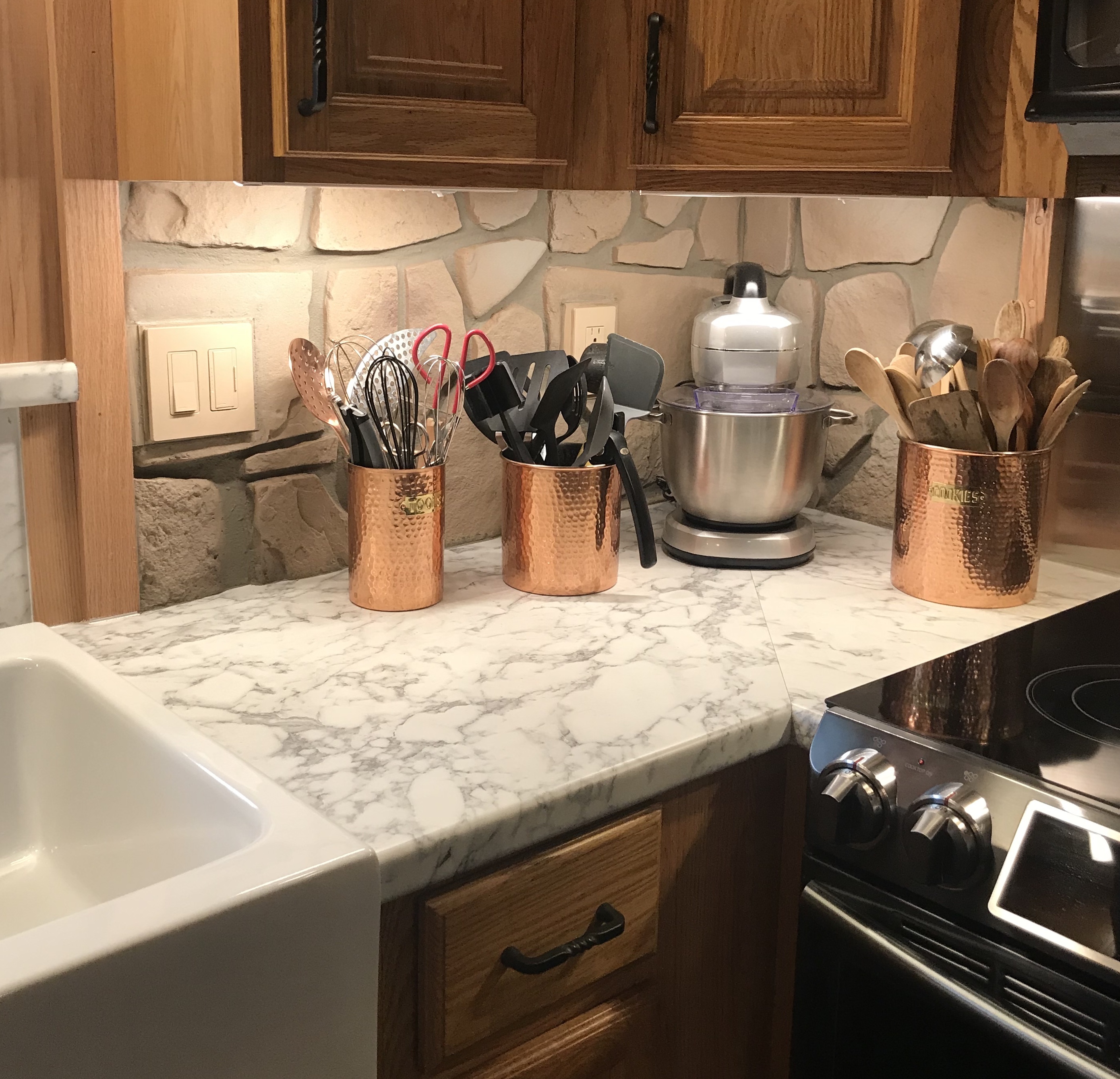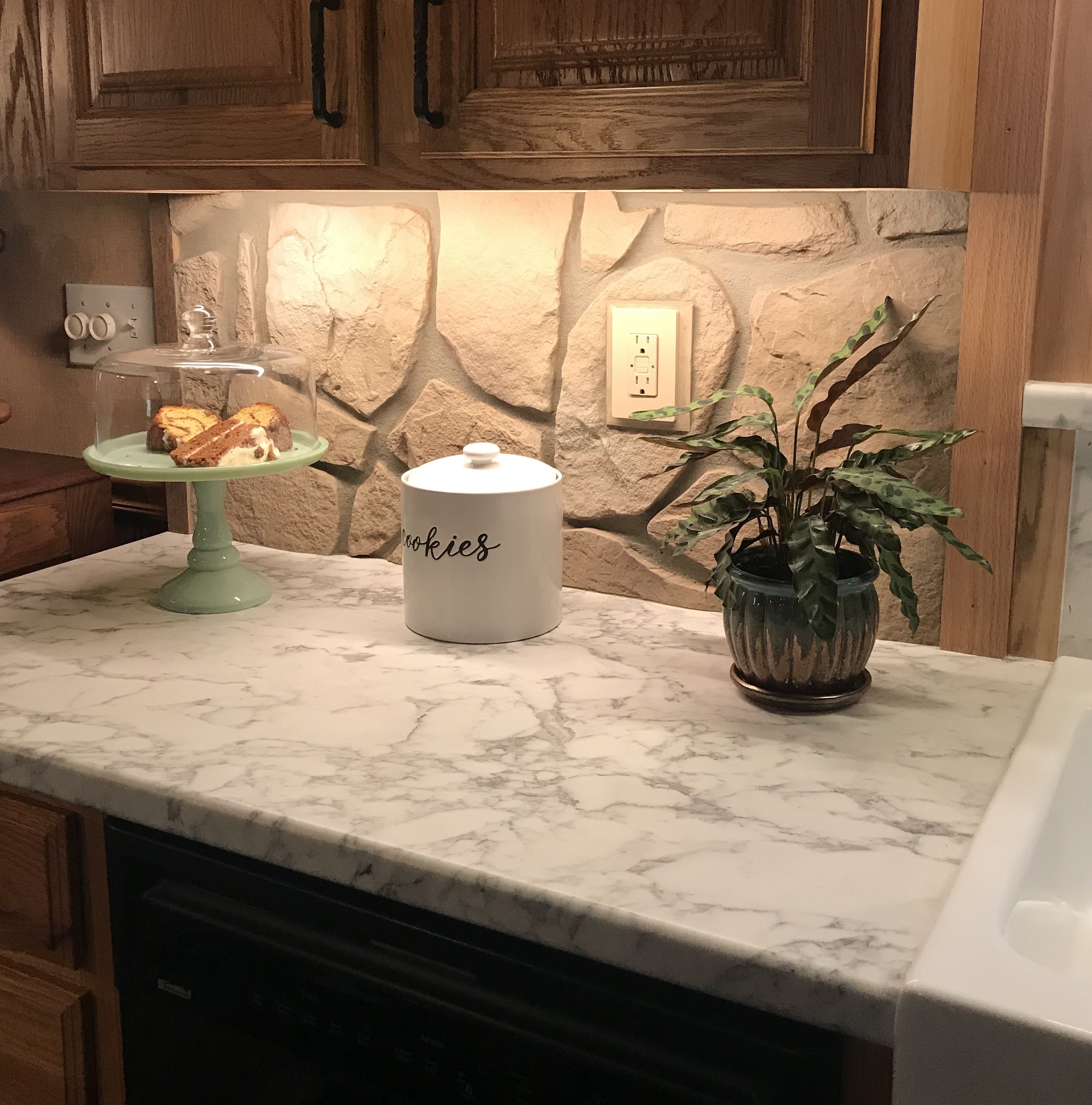 The panels' advantages quickly add up - making them the logical choice for adding a stone-look to a kitchen without the headaches or expense. The project we're featuring here took just hours to install, and looks fantastic.