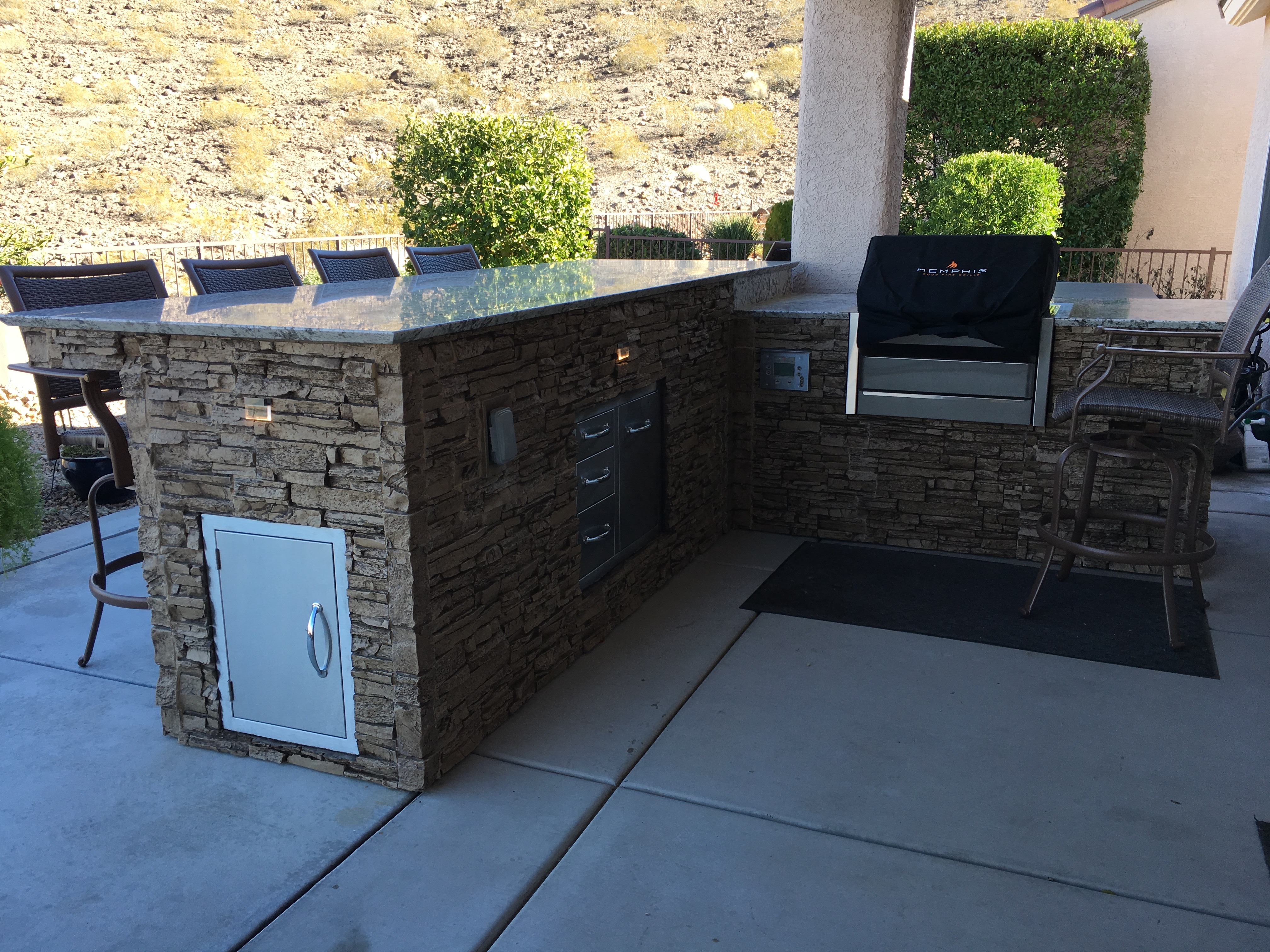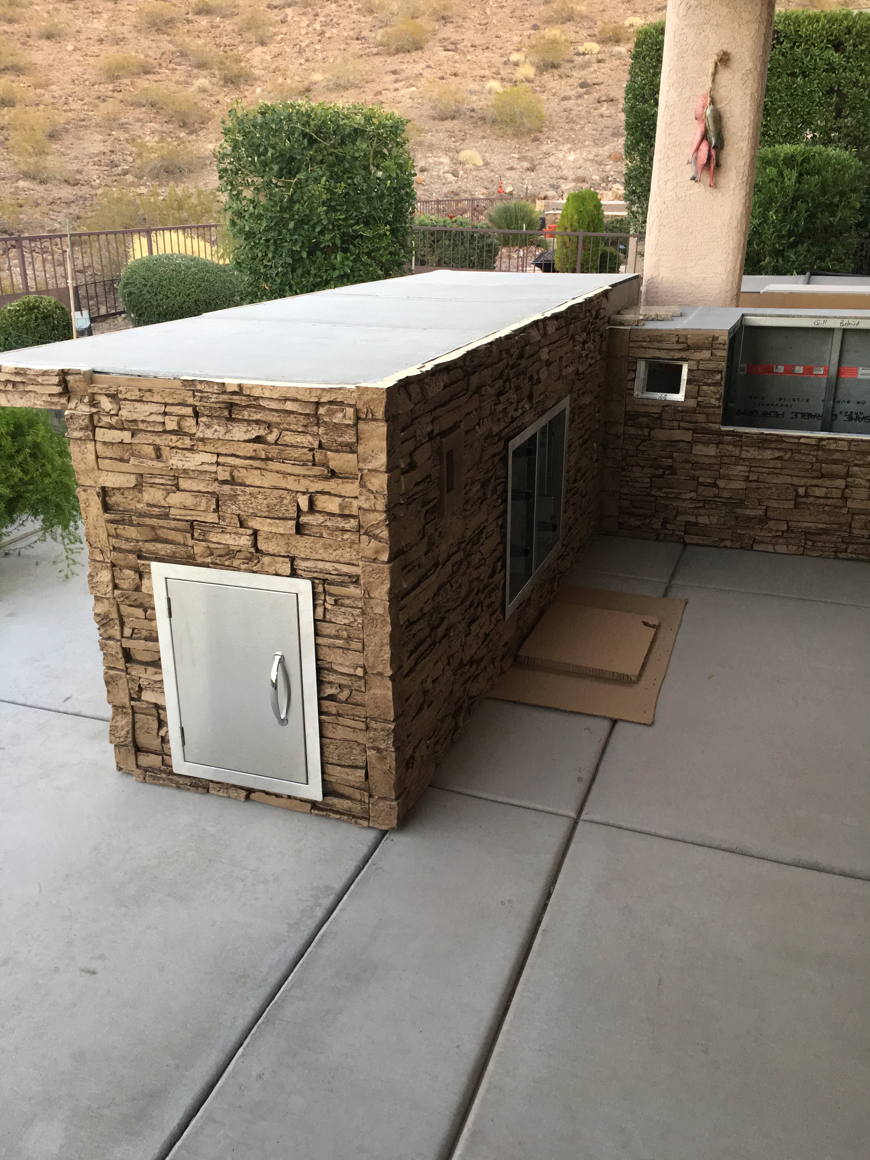 Traditionally, many outdoor kitchens are made with actual stacked stone - piled up on top of each other and sealed with traditional mortar. This can look great, but is impractical for a number of reasons - not least of which is the cost of buying hundreds of stones, and the days or weeks it takes to build and finish that sort of project.