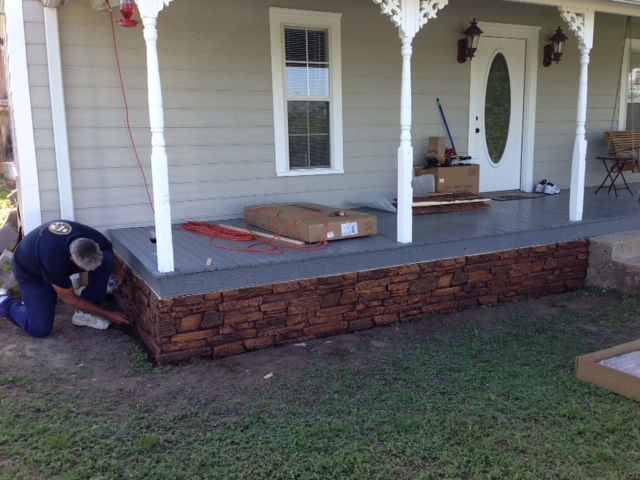 When our customer, Mark from Texas, completed his DIY porch remodel using Oxford Ledgestone panels, he emailed us and said, “Our local contractor / builder stopped by to check it out and was amazed at how much it looked like actual stone.”