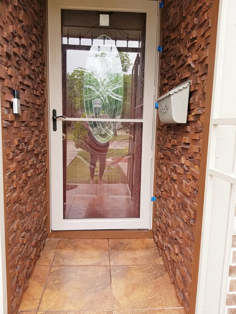 And, fortunately, it did. As you can see from the AFTER pictures, Jennifer actually made a silk purse from a sow's ear and used the rebuild as the opportunity to expand and extend her entrance. She added a beautiful new screen door, surrounded by sturdy new framing, and refreshed the tiles underfoot to make them appear brand new.