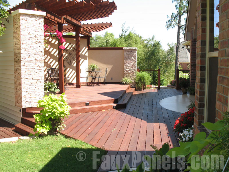 For this project, the homeowner installed Stonewall panels in light tan to create the look of beautiful pillars marking the ends of the patio space.