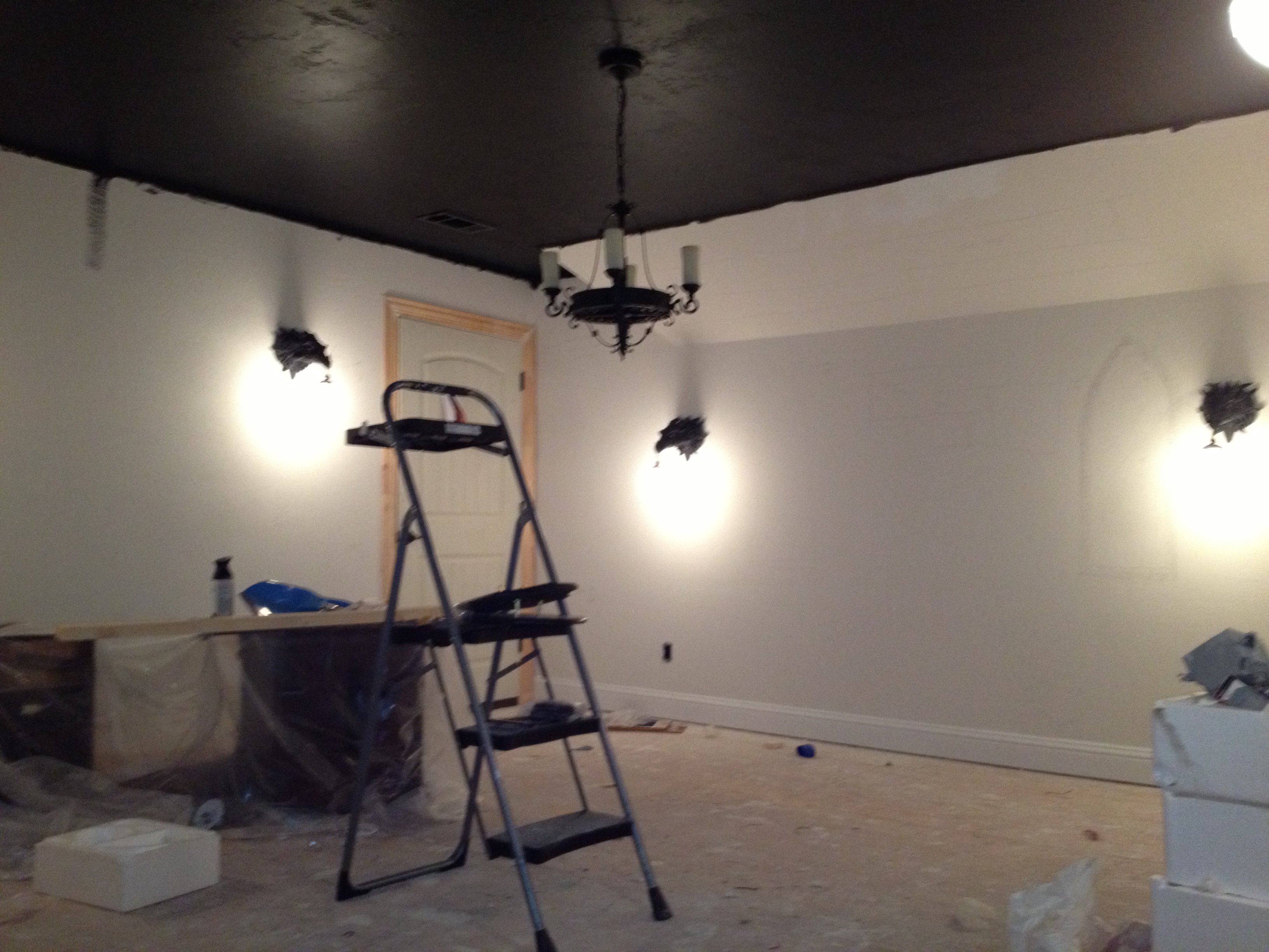Brent took his time to make sure that everything was measured, cut and painted correctly. IN PROGRESS: You can already see the improvement the black ceiling makes.