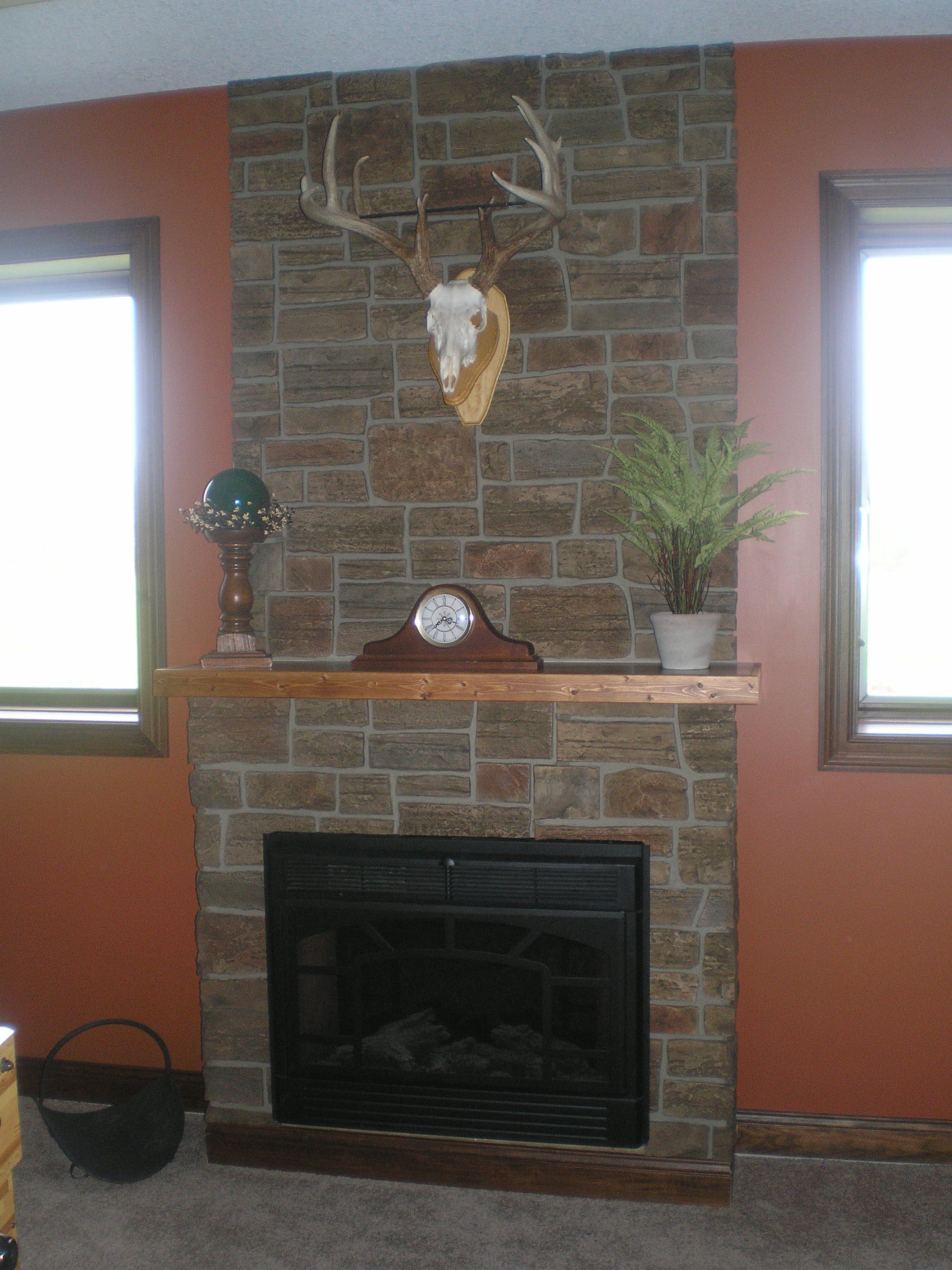 Basement bar fireplace surrounded with Carlton Ledgestone panels. A beautiful fireplace, also framed with Carlton Ledgestone completes the family pub