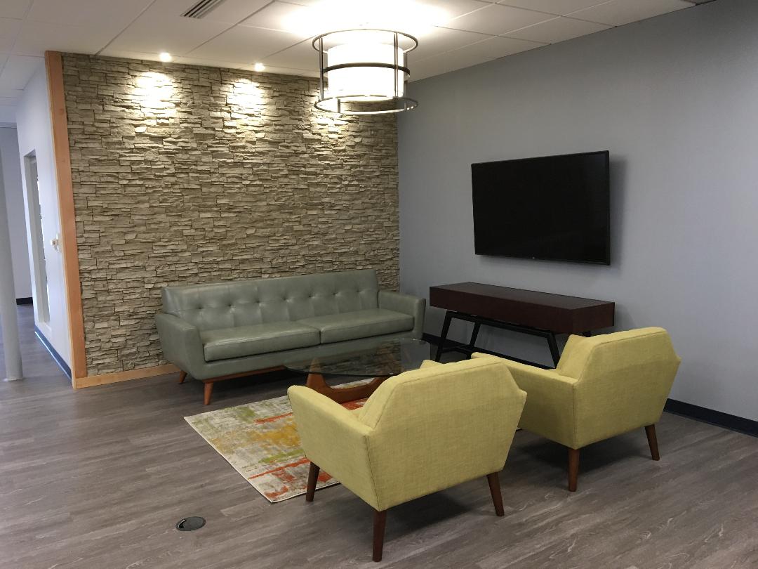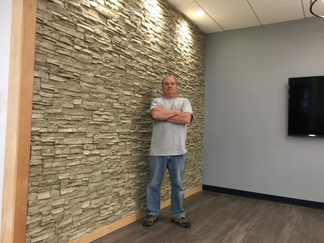 Tony covered one entire wall in the waiting area with our Colorado Stacked Stone panels in Creamy Beige color - and they make a dramatic and striking showpiece that really helps elevate what could have otherwise been a drab and mundane office interior.