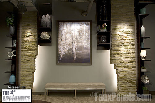 NBC has shown our Windsor Drystack Western Taupe faux panels on their hit show "The Apprentice" starring Donald Trump. Click here to check out how our panels were used on the show |