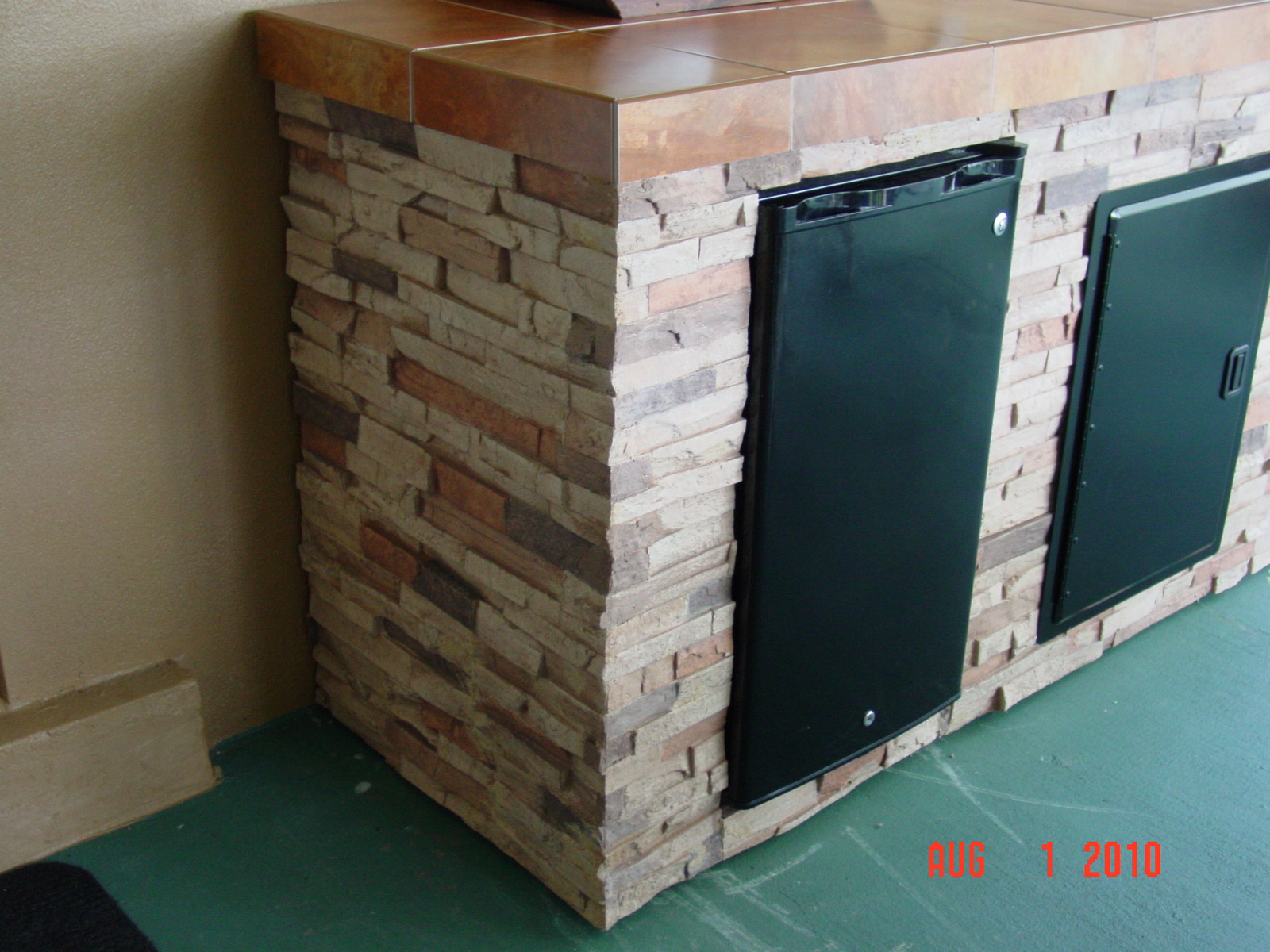 Grilling or cooking outdoors is a favorite of many, but usually restricted by season or inclement weather. A DIY customer of ours recently solved this problem by converting his home's lanai/patio area into an patio kitchen using ingenuity and a little help from Wellington Dry Stack Panels in Tierra Gold.