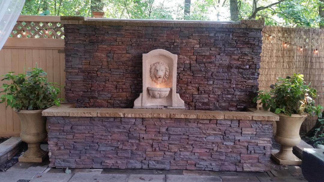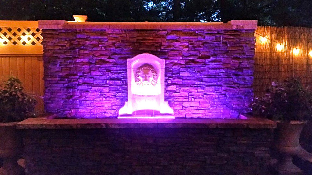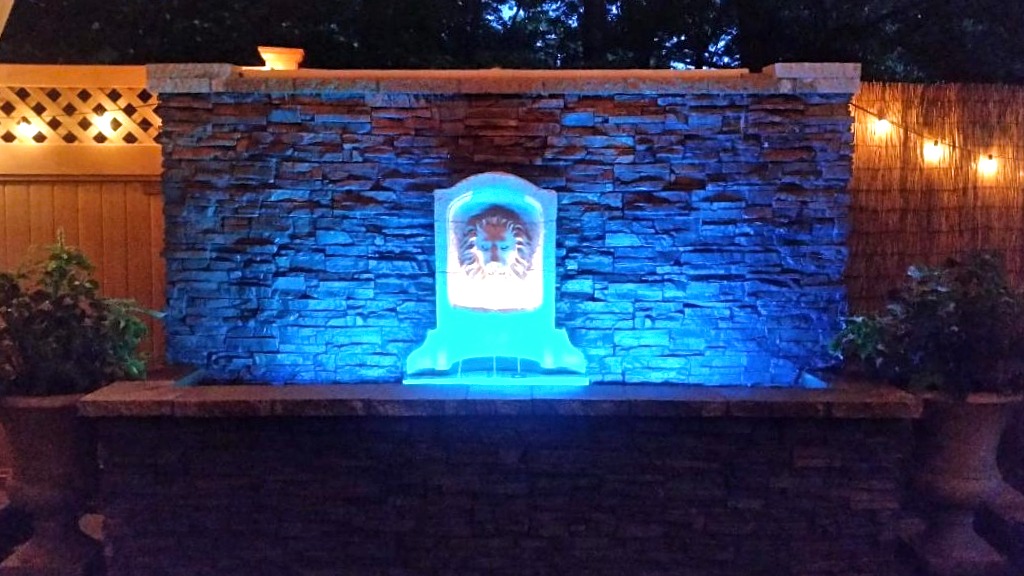 Winter is approaching, and the nights are closing in. That's when enterprising designers showcase new and innovative ways to accessorize our faux stone panels; like this outdoor water wall with bright LED lights.