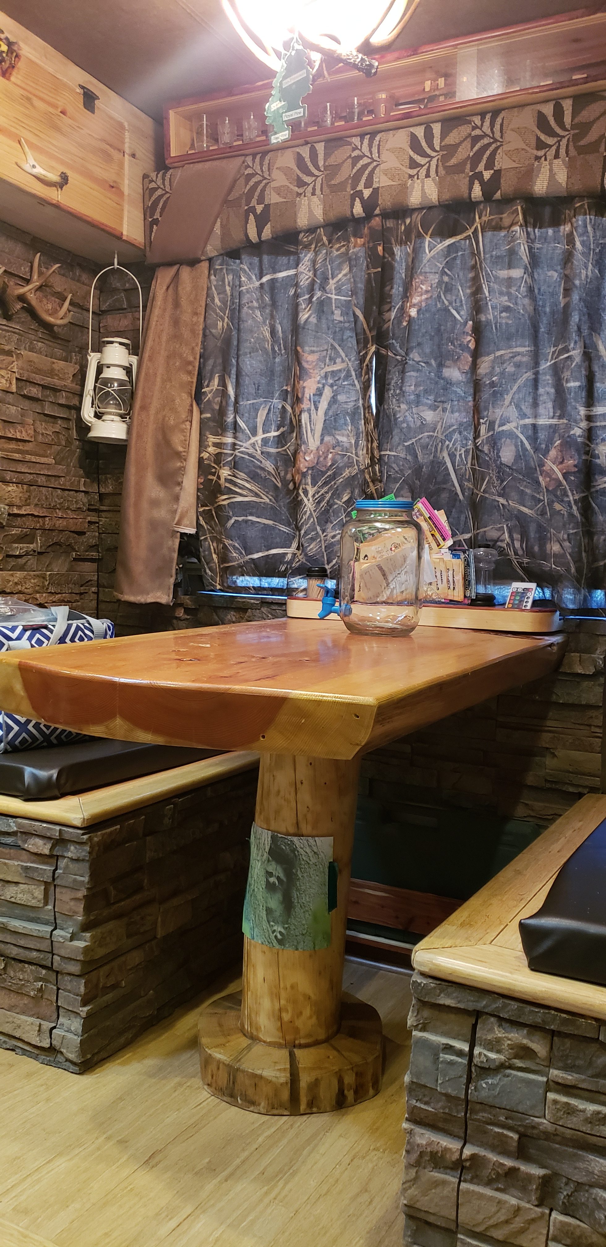 He was inspired to give it a rustic look similar to a classic hunting lodge - since he'd already added beautiful wood features and hunting-themed curtains. However, Gregg really needed a touch of stone to really complete the look.