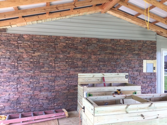 Fauxpanels.com customer Jefferey sent in pictures of his awesome screened in porch design, made with a little farmhouse style using Regency Stacked Stone Panels.